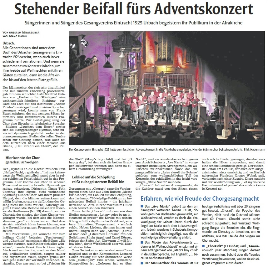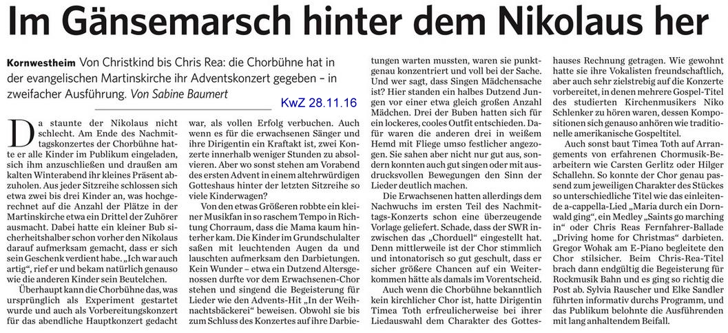 Schorndorfer Nachrichten am 12. Dezember 2016