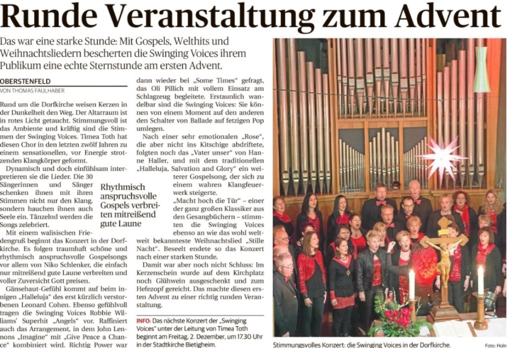 Frohe Klänge im Kerzenschein am 04. Dezember 2016